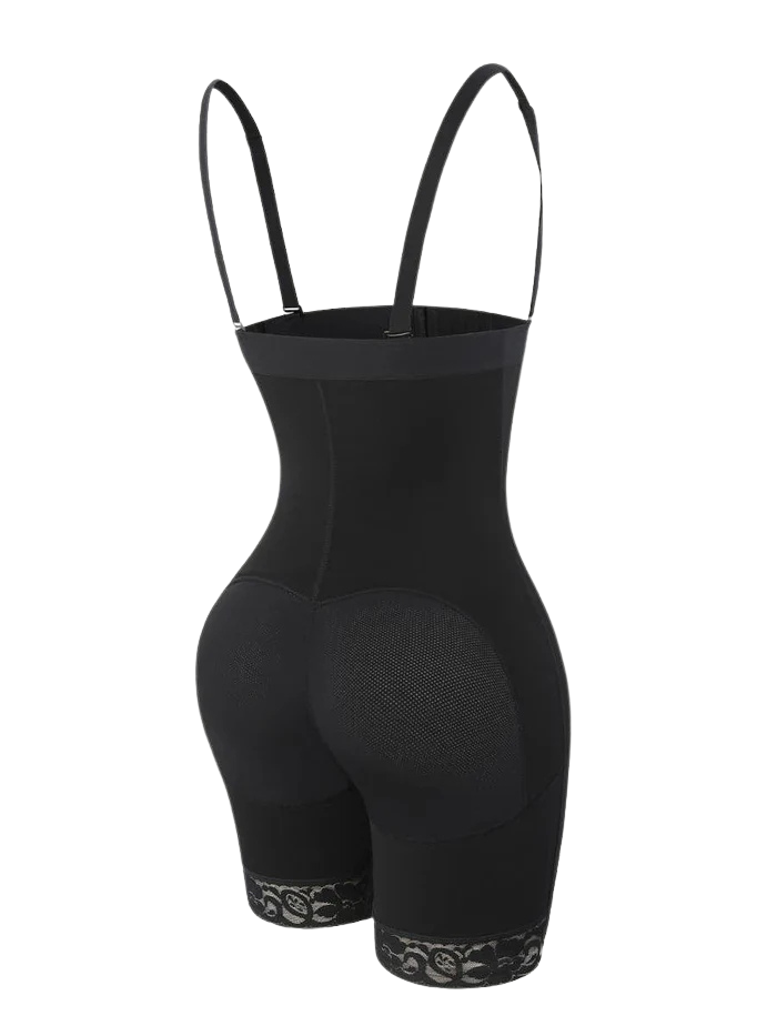 This shaper has removable straps and an open bust for that "no-show" look. Patented elastic waistline makes it easy to wear It's made with high waisted firm compression fabric, to shape your torso and thighs This shaper combines comfort, compression and convenience.